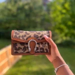 This Leopard Print Clutch with Brown Leather Accents blends timeless style with a modern twist. The striking leopard print is complemented by the rich, warm brown leather, offering a balanced yet bold look. Perfect for adding character to any outfit, this clutch is the go-to accessory for any event, day or night.